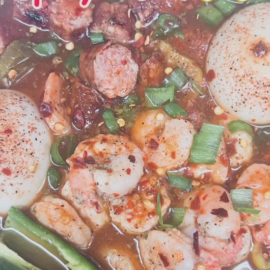 Add some sizzle to your taste buds with our Spicy Bowl. Loaded with jalapenos, pepperoncinis, banana peppers, pickles, eggs, and your choice of pork/pickled sausage or shrimp - all served with a bag of Sour Cream and Cheddar Chips. Add an extra meat for $3 more. Satisfaction guaranteed!