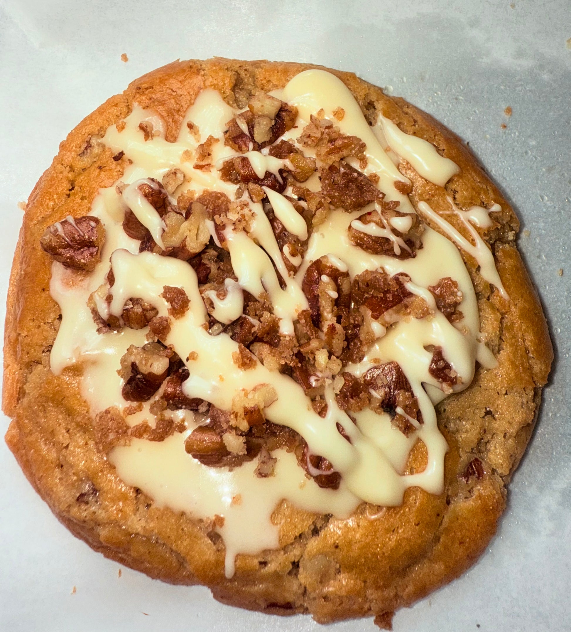 Indulge in our Double Butter Pecan cookies! With a sweet, buttery taste and the rich flavor of pecans, these warm cookies are sure to satisfy your cravings. Topped with a decadent caramelized cream cheese flavored icing, they're double the deliciousness in every bite.